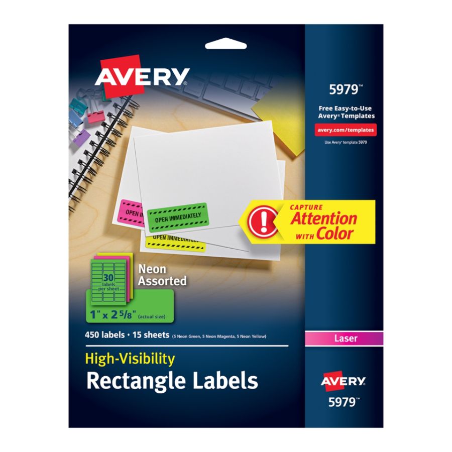 Avery High Visibility Laser Address Labels, 1" x 2-5/8", Neon Green ... Avery High-Visibility Laser Address Labels, 1" x 2 5/8", Assorted Colors, 450 Labels Per Pack (5979) Was $17.29 $13.83 Box This item ships FREE * Qty Add to Cart 4.8 (27) Avery High-Visibility Laser Multipurpose Labels, 1" x 2 5/8", Neon Magenta, 750 Labels Per Pack (597 $32.99 Box When you buy 5+ This item ships FREE * Qty Add to Cart 4.3 (12)