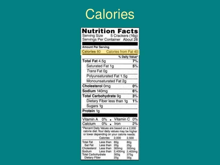 What are calories on food labels. Food Labels: Fat & Cholesterol | Home & Garden Information Center The label does the math for you, putting all the numbers on the same scale of 0-100% DV for the day. These percentages are based on a 2,000-calorie daily diet, which is average for someone who is moderately active. Your daily values may be higher or lower depending on your calorie needs. The % DV column does not add up vertically to 100%. Dietary Recommendations for Healthy Children | American Heart ... Calories/ Food 1 year 2 to 3 years Detail; Calories kilocalories per day (kcal/d) 900 kcal/d: 1000 kcal/d: Calorie estimates are based on a sedentary lifestyle. Increased physical activity will require additional calories: by 0-200 kcal/d if moderately physically active; and by 200–400 kcal/d if very physically active. Fat: 30-40%: 30-35% ... How To Read Food and Beverage Labels | National Institute on Aging Or you can call the U.S. Department of Agriculture's Food and Nutrition Information Center at 301-504-5414. Understanding percent Daily Value (% DV) The percent Daily Value (% DV) tells how much a nutrient in a serving of the food or beverage contributes to a total daily 2,000-calorie diet. The Big Reveal: What's Behind Nutrition Labels? He found that carbohydrates and proteins were worth 4 Calories per gram and fats about 9 Calories per gram. This 4-9-4 system is how labels are determined today. In some cases, dietary fiber is subtracted from the total carbohydrate count because it is assumed that it provides no nutritional calories.