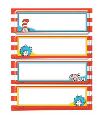 Dr Seuss Name Labels Teaching Resources | Teachers Pay Teachers Desk Name Tags - Dr. Seuss Theme by Renee Cassel 4.8 (160) $2.00 PDF These desk name plates are great for the primary age classroom. They include letters, numbers 0-20, shapes, color words and left/right hands. The background will fit great with any Dr. Seuss decor. It will print 2 per page making each name tag 4.25' x 11'.